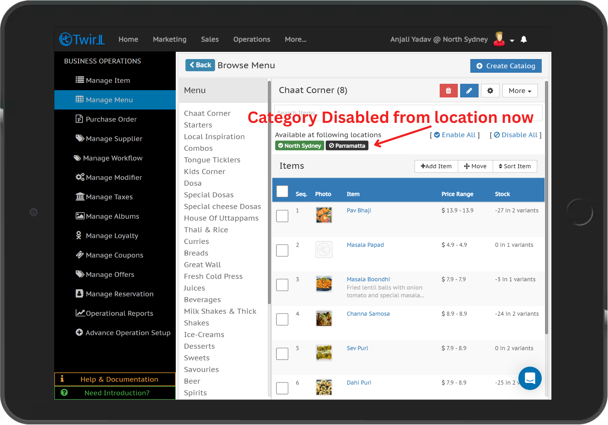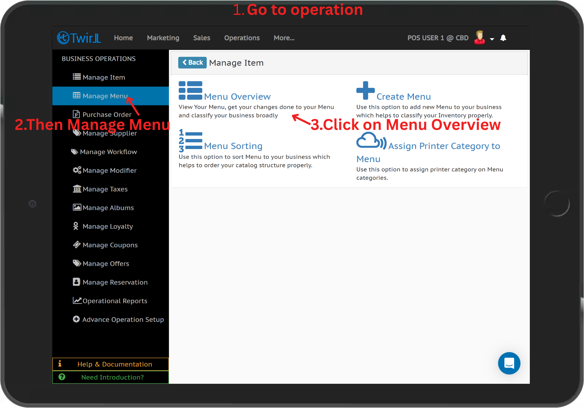 1. Logon twirll portal. Go with operation select manage menu and then click on menu overview.