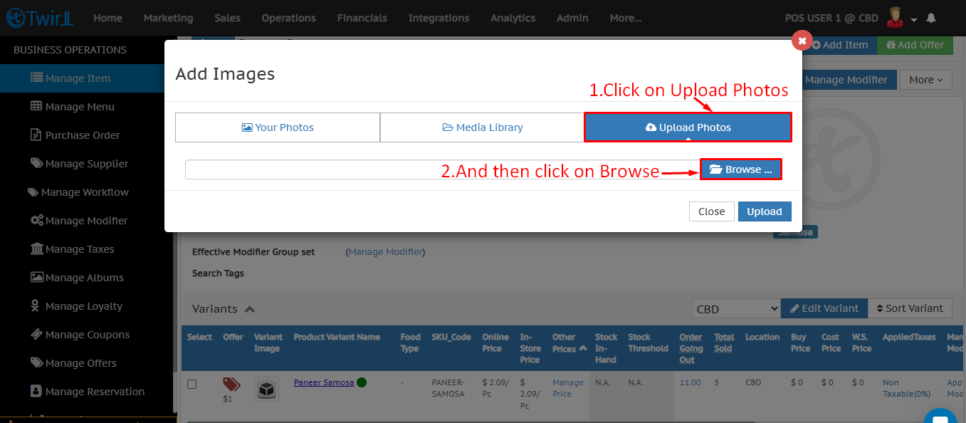 Step 2: Click on the item/product for which you want to upload or update the image.