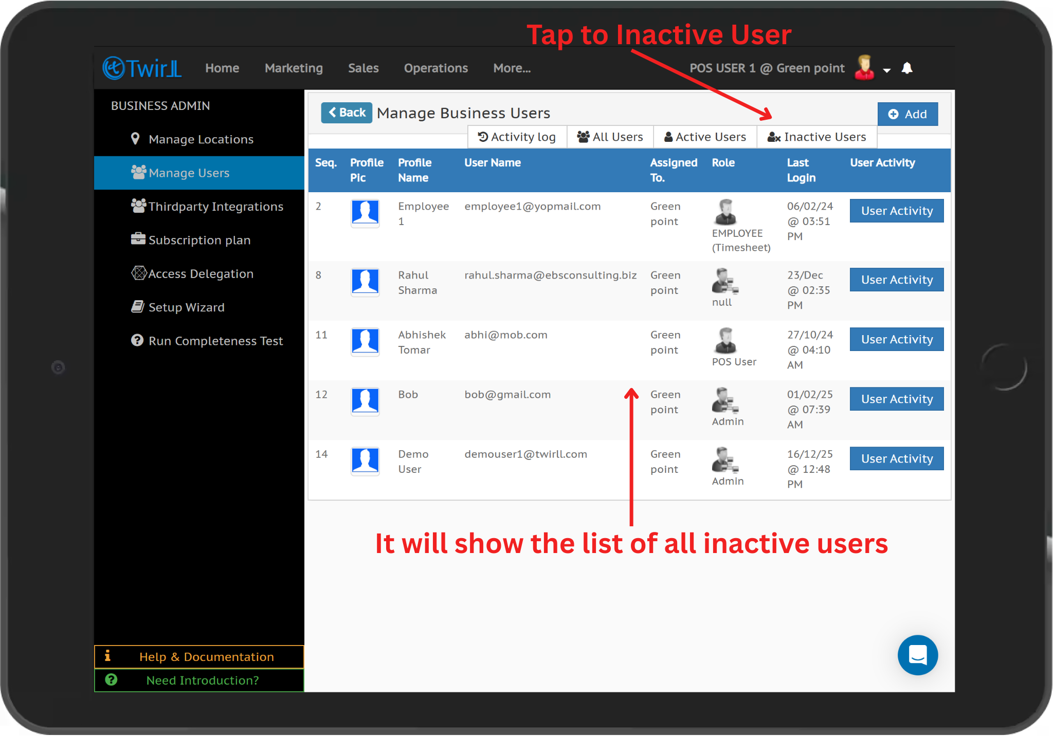 Step 2:- Switch to inactive users tab, List of all inactive users will display.