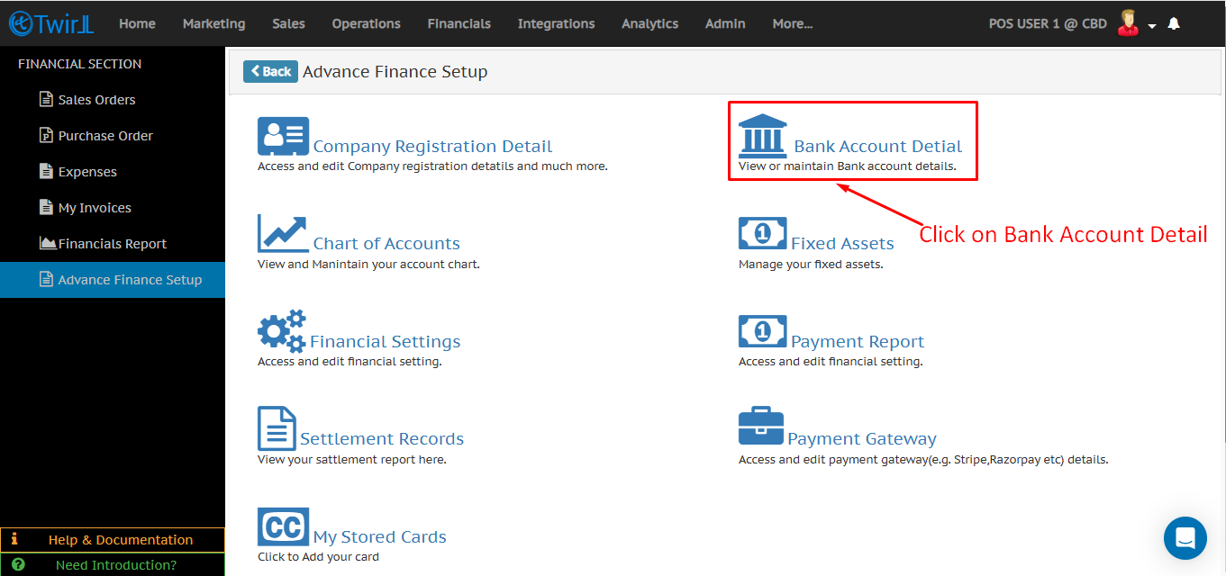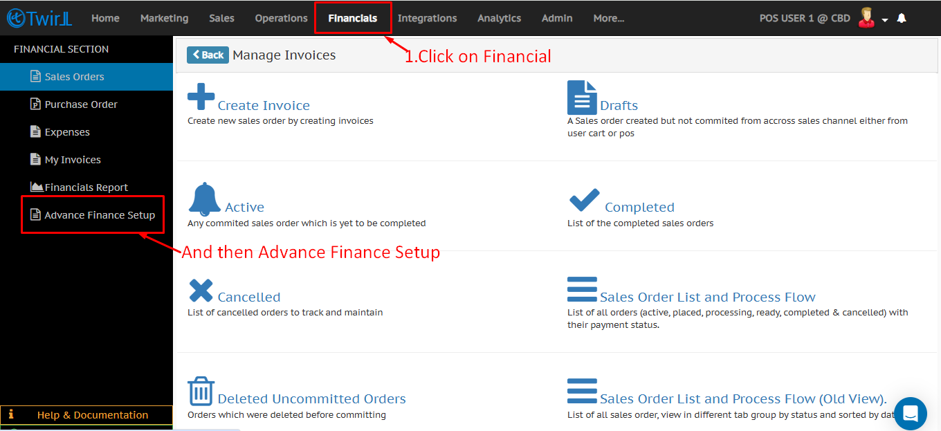 Step1: Log in to portal.twirll.com, navigate to Financial, and then click on Finance Setup.