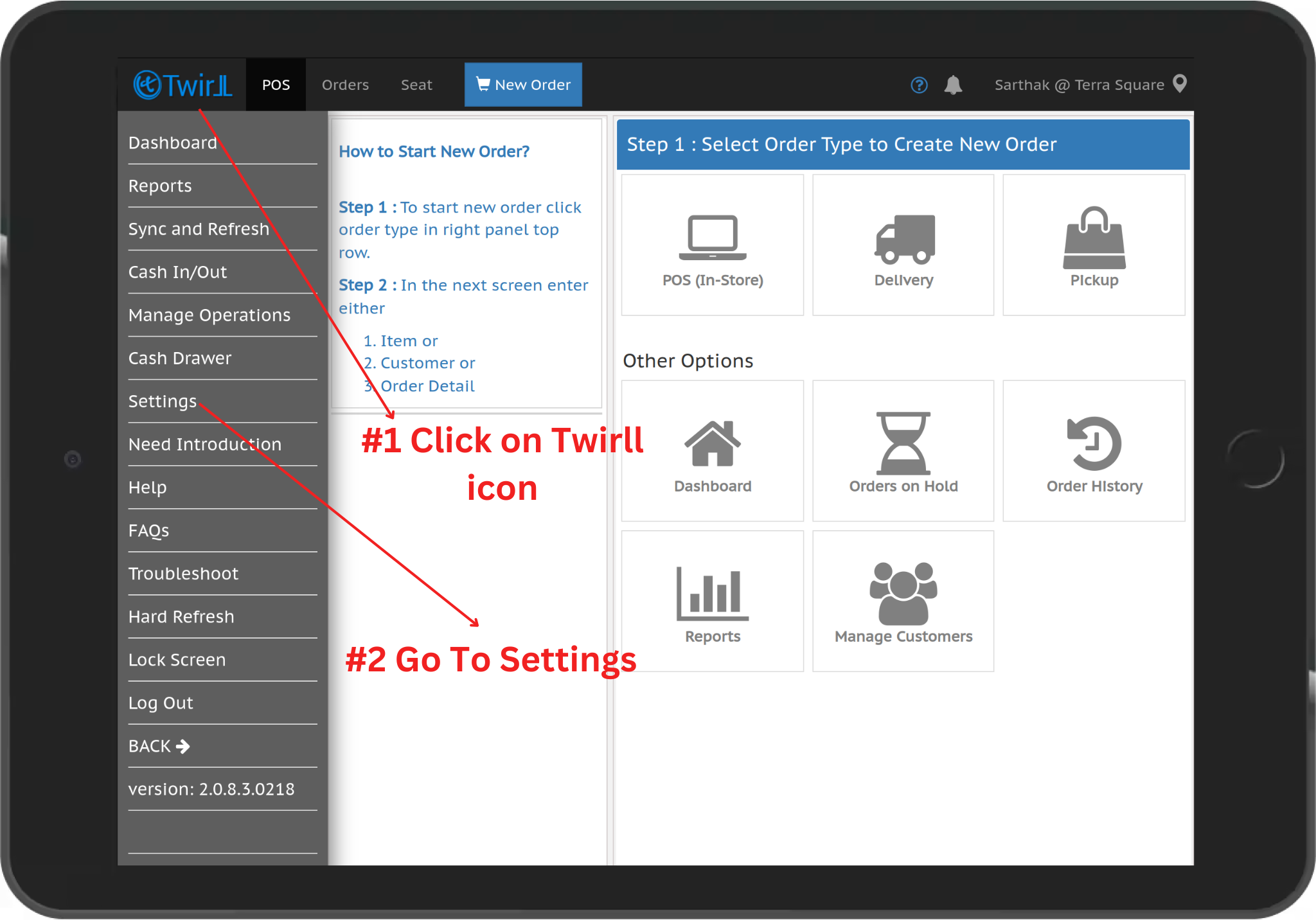 Step 2:- Navigate to the Settings menu in the POS system.