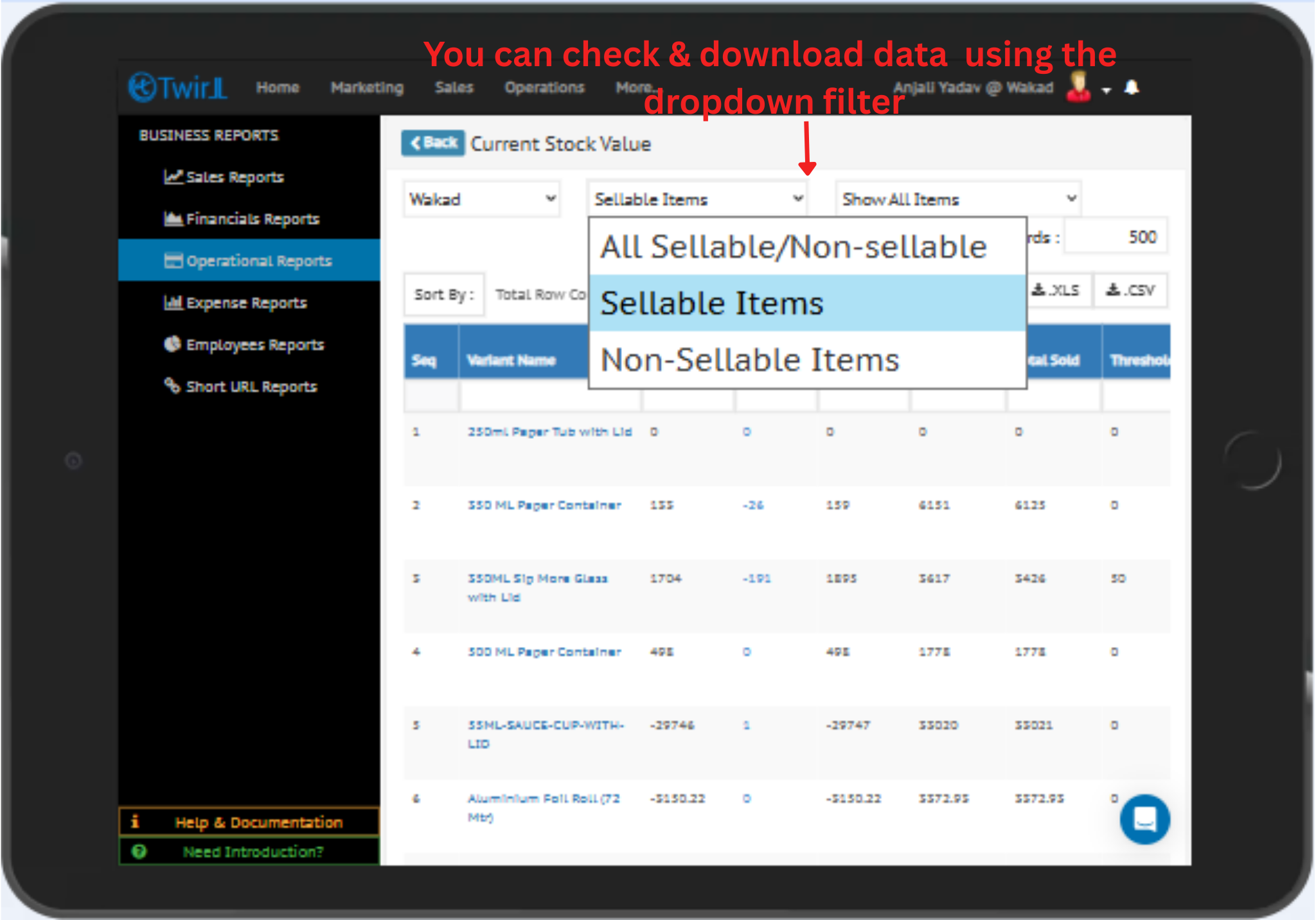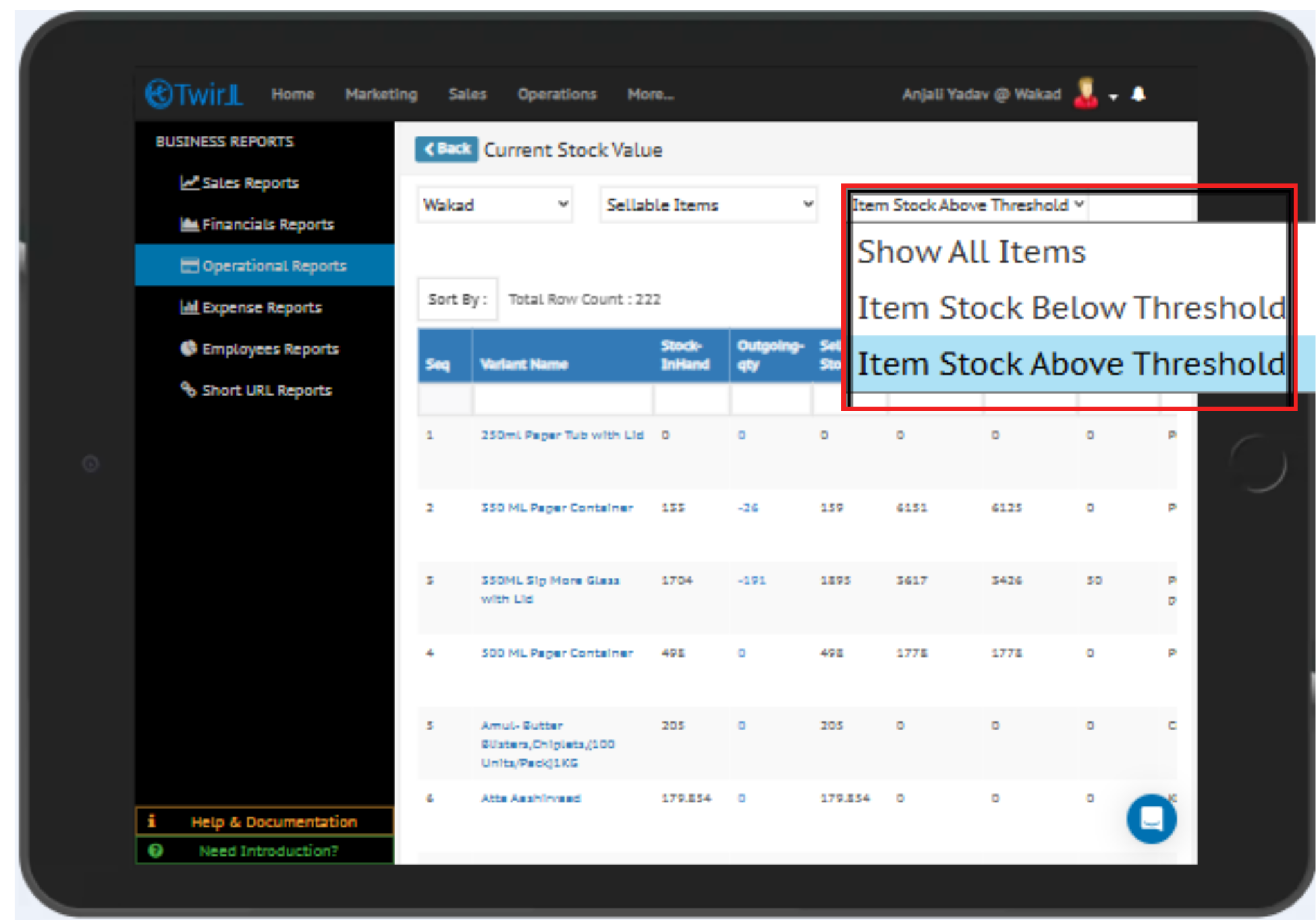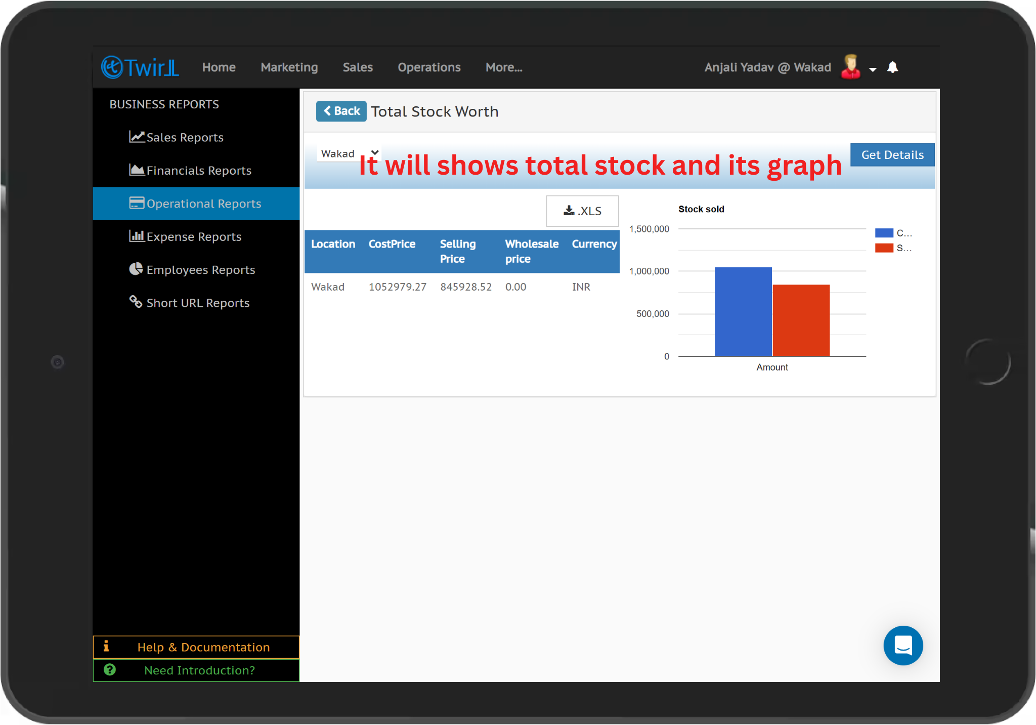 Operational report shows the details about the stock you have in your Inventory, to view your operational report follow path as