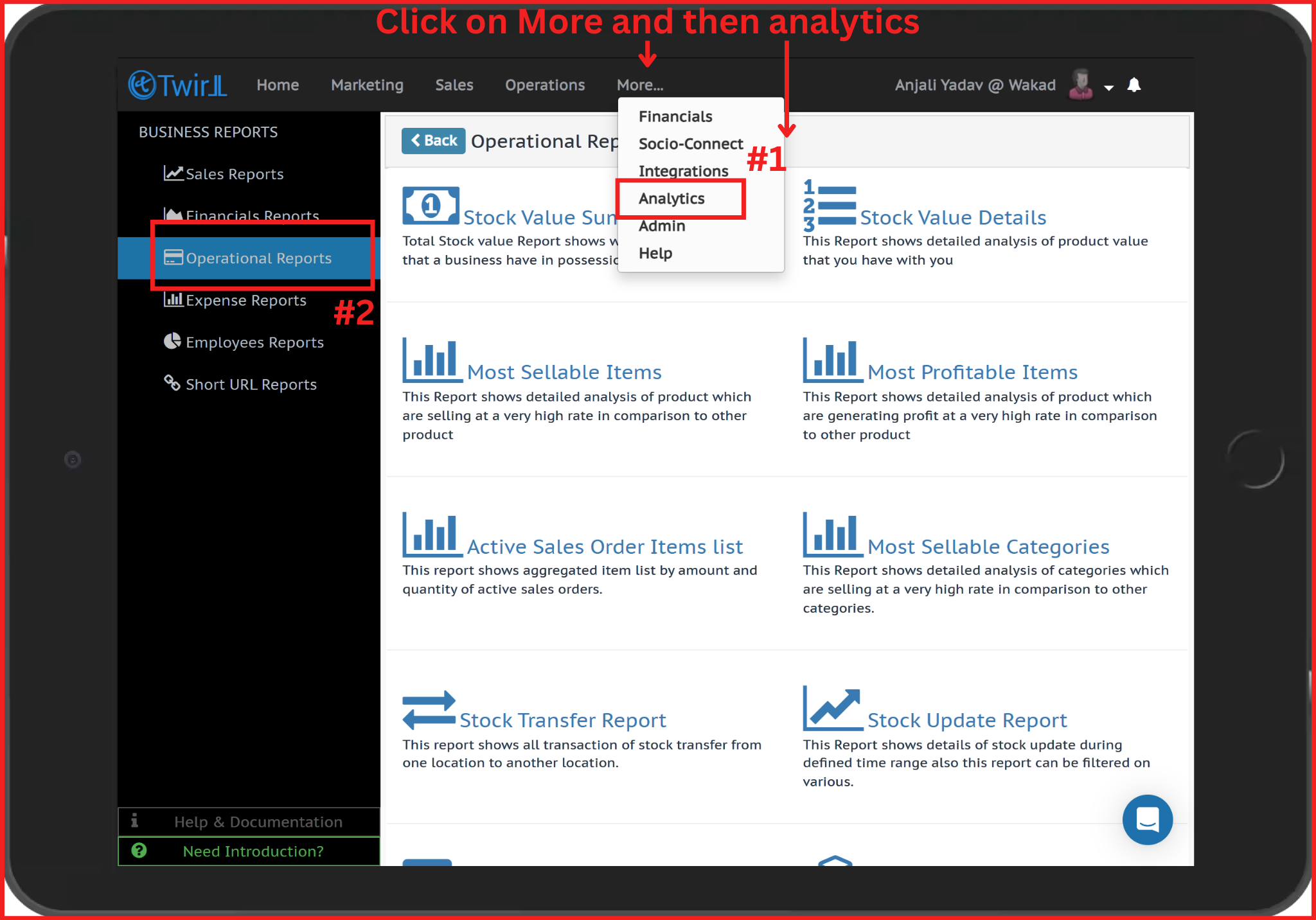 Step 1: Log in to the Twirll Portal. Navigate to Analytics and then select Operational Reports.
