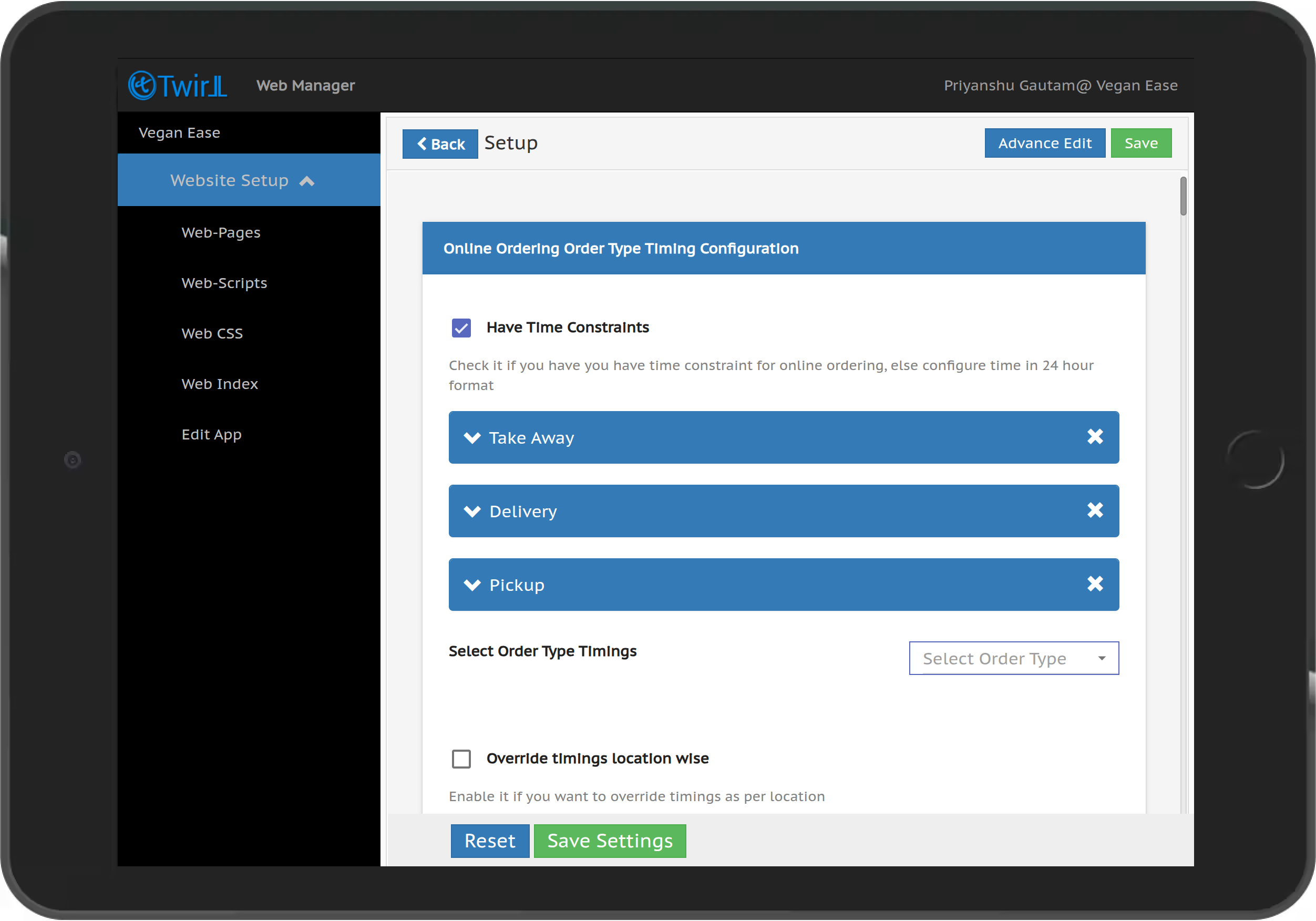 Use the below steps to reach to Twirll Web Manager to edit or create your ecommerce website.